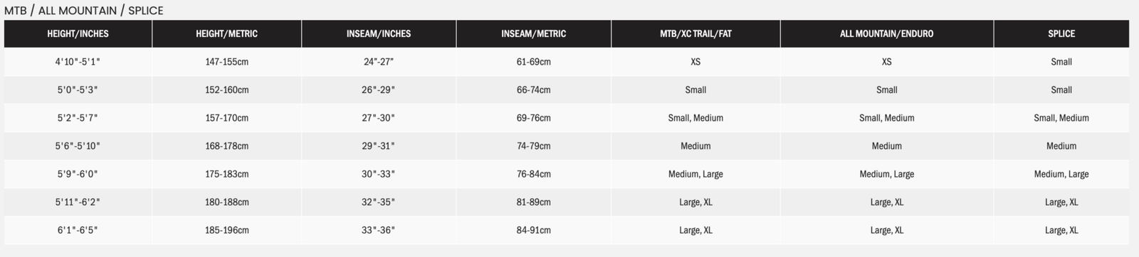 | Frame size | S, M, L, XL |