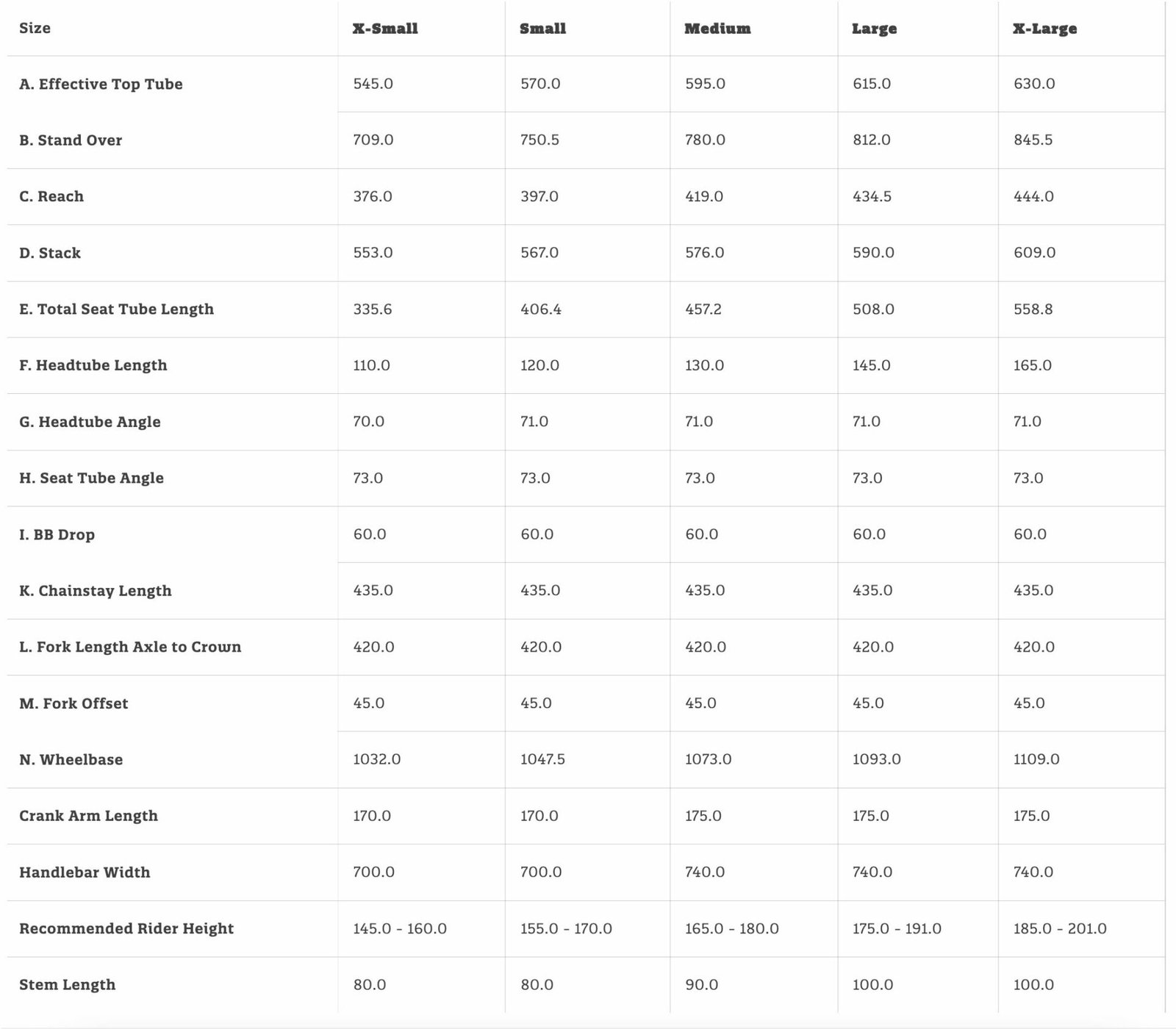 | Frame size | XS, S, M, L, XL |