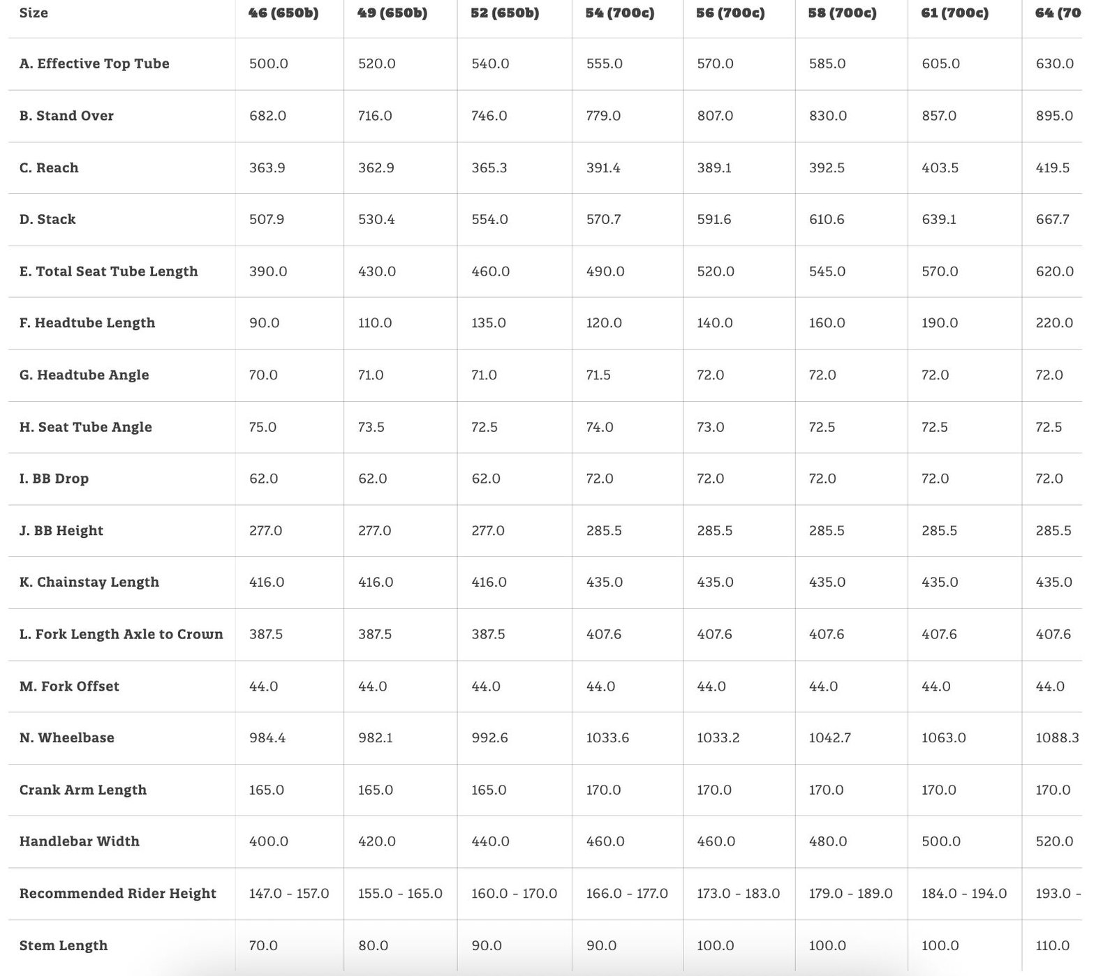 | Frame size | (650b)46,49,52 (700c)54,56,58,61,64 |